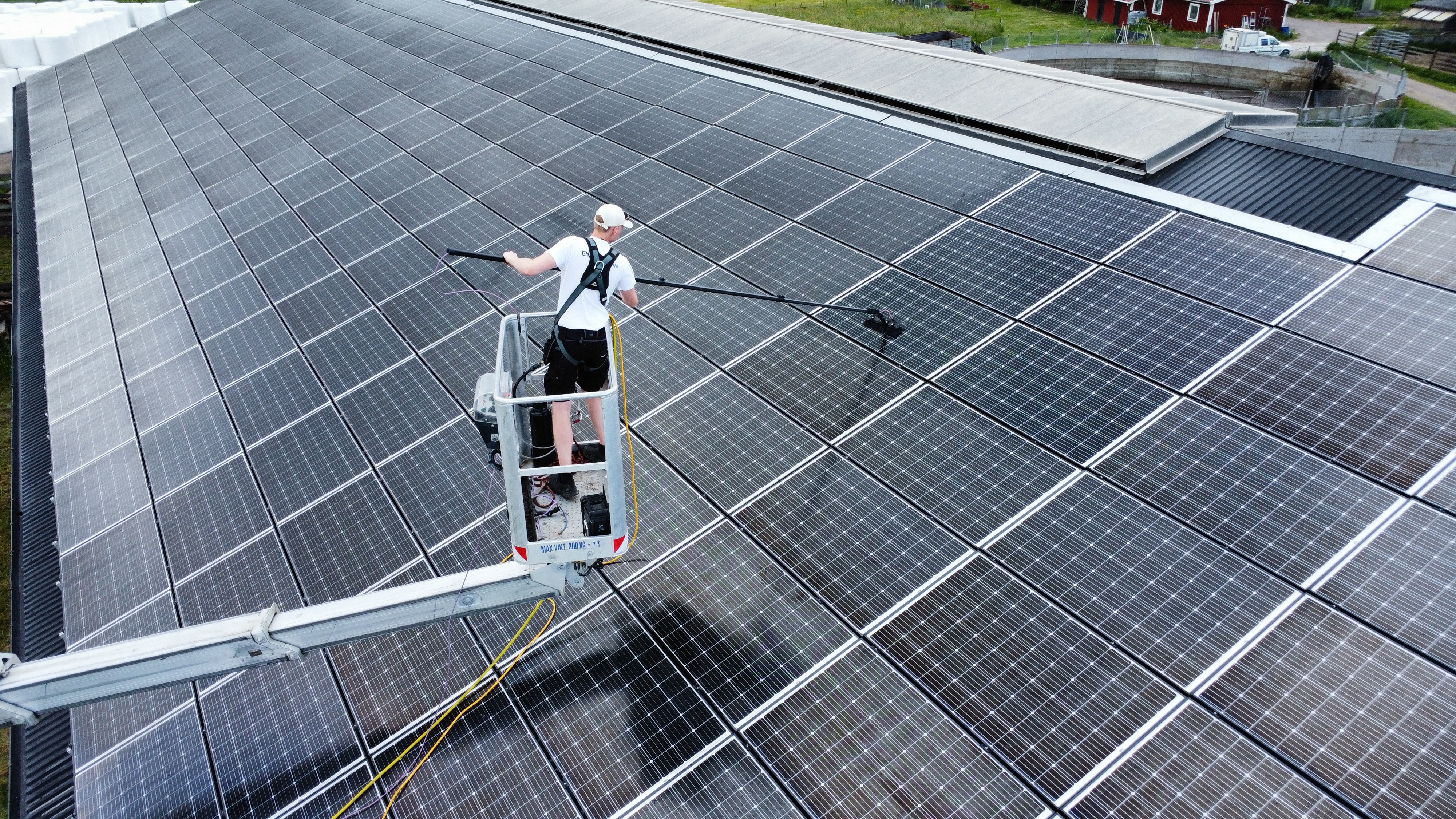 Med särskilt renat vatten försäkrar vi oss om att inga avlagringar lämnas på panelerna.