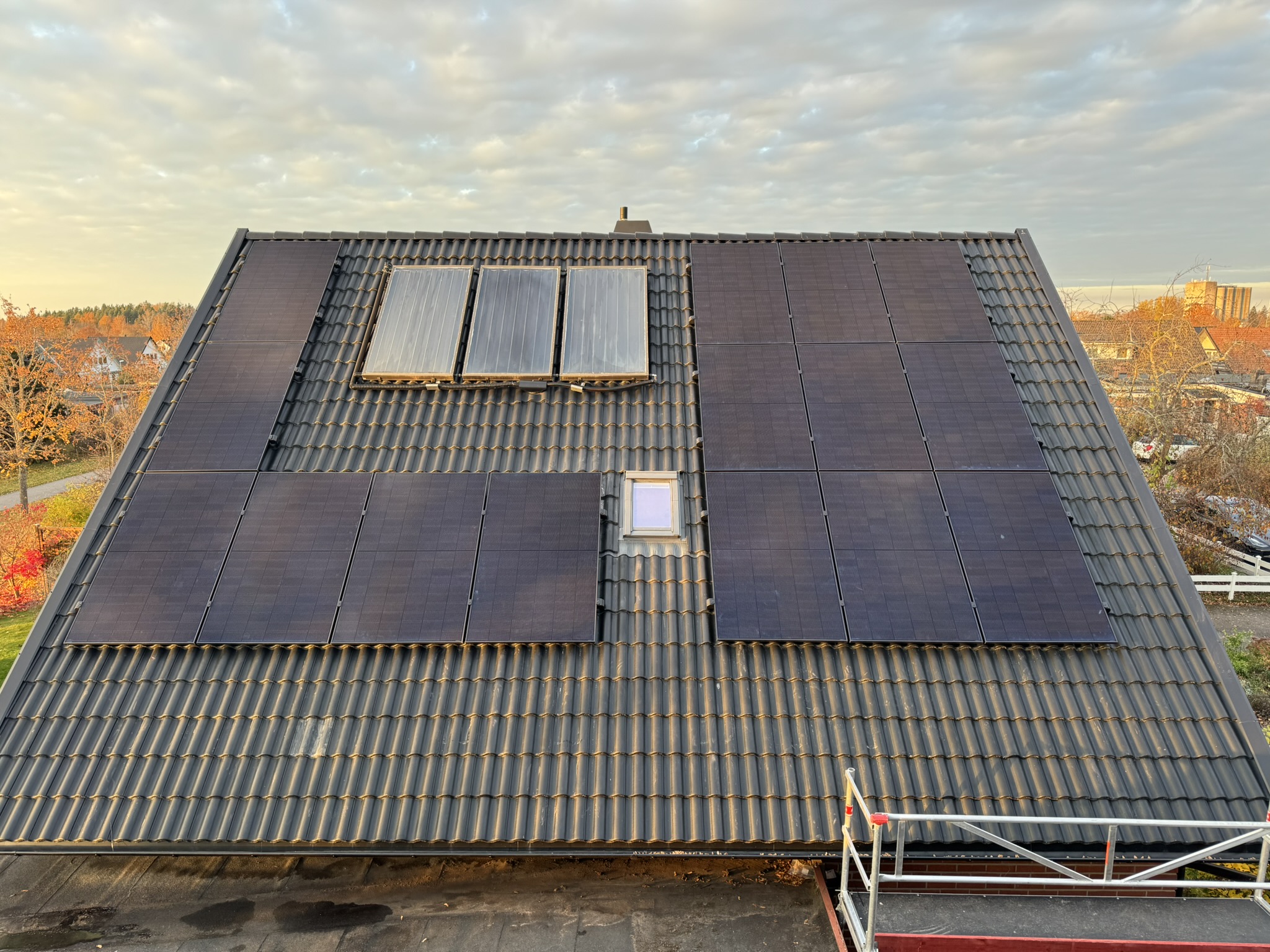 Här installerades 16 solpaneler per takyta för en total på 32st solpaneler.
